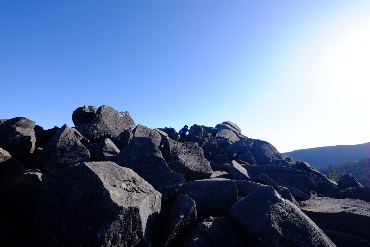 巨石の上をよじ登っていきます。