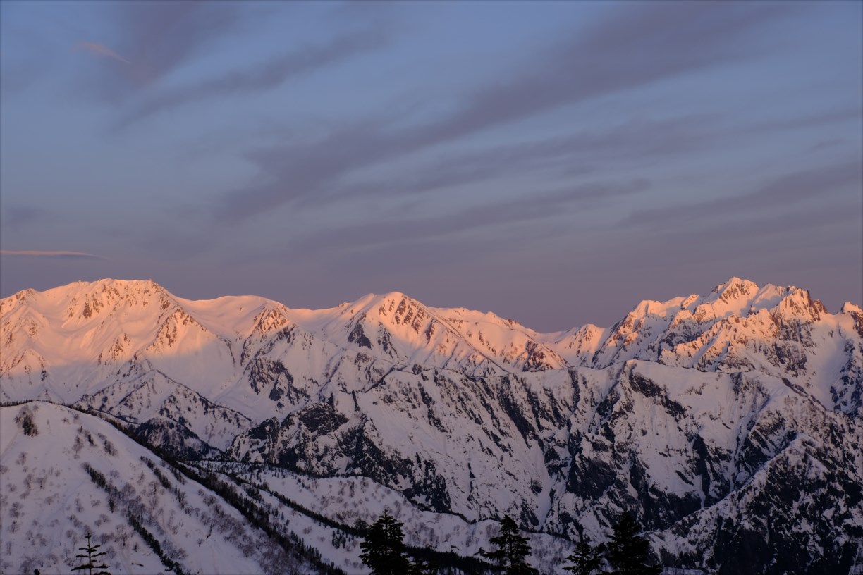 モルゲンロートに染まる剱岳。