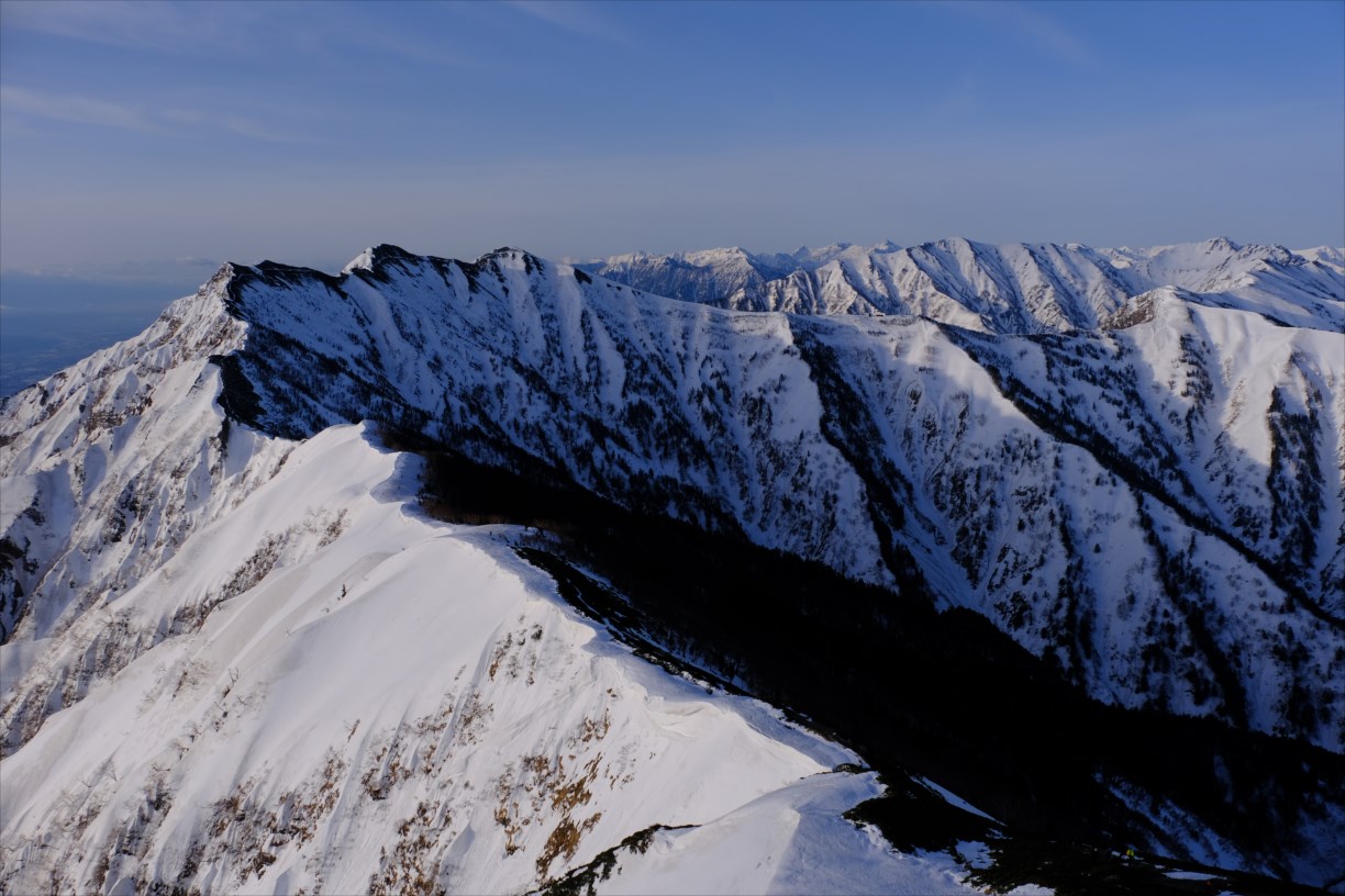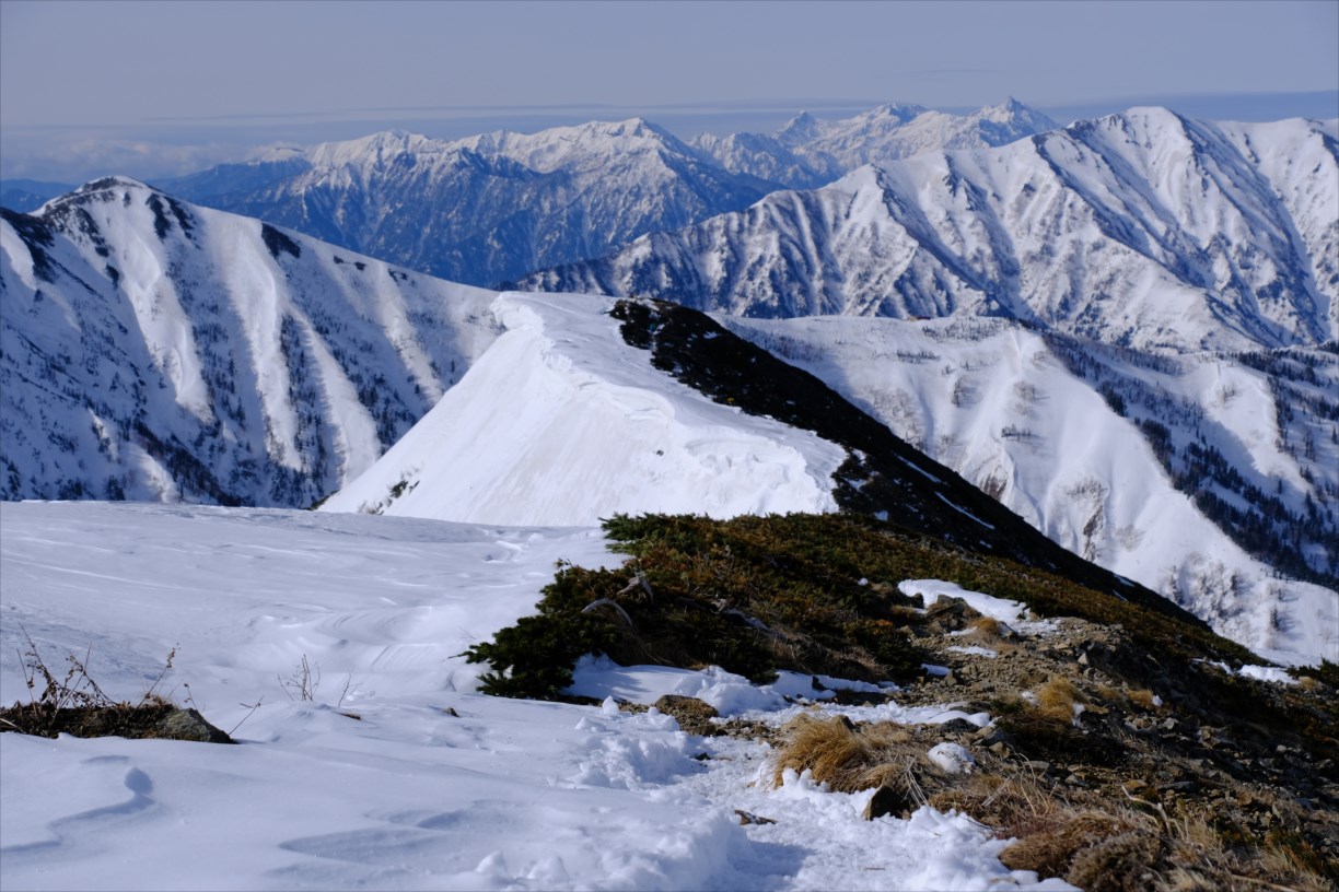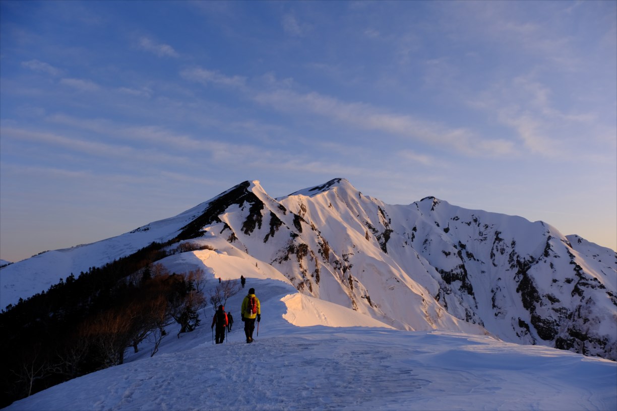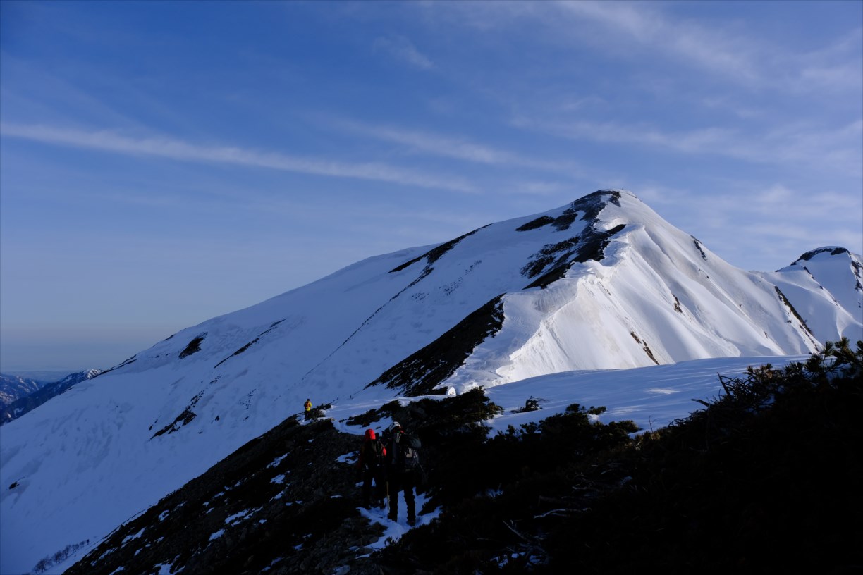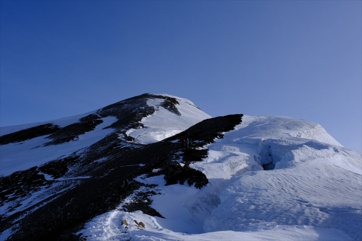 稜線上右手には雪庇が発達しているため、近づかないように要注意です。