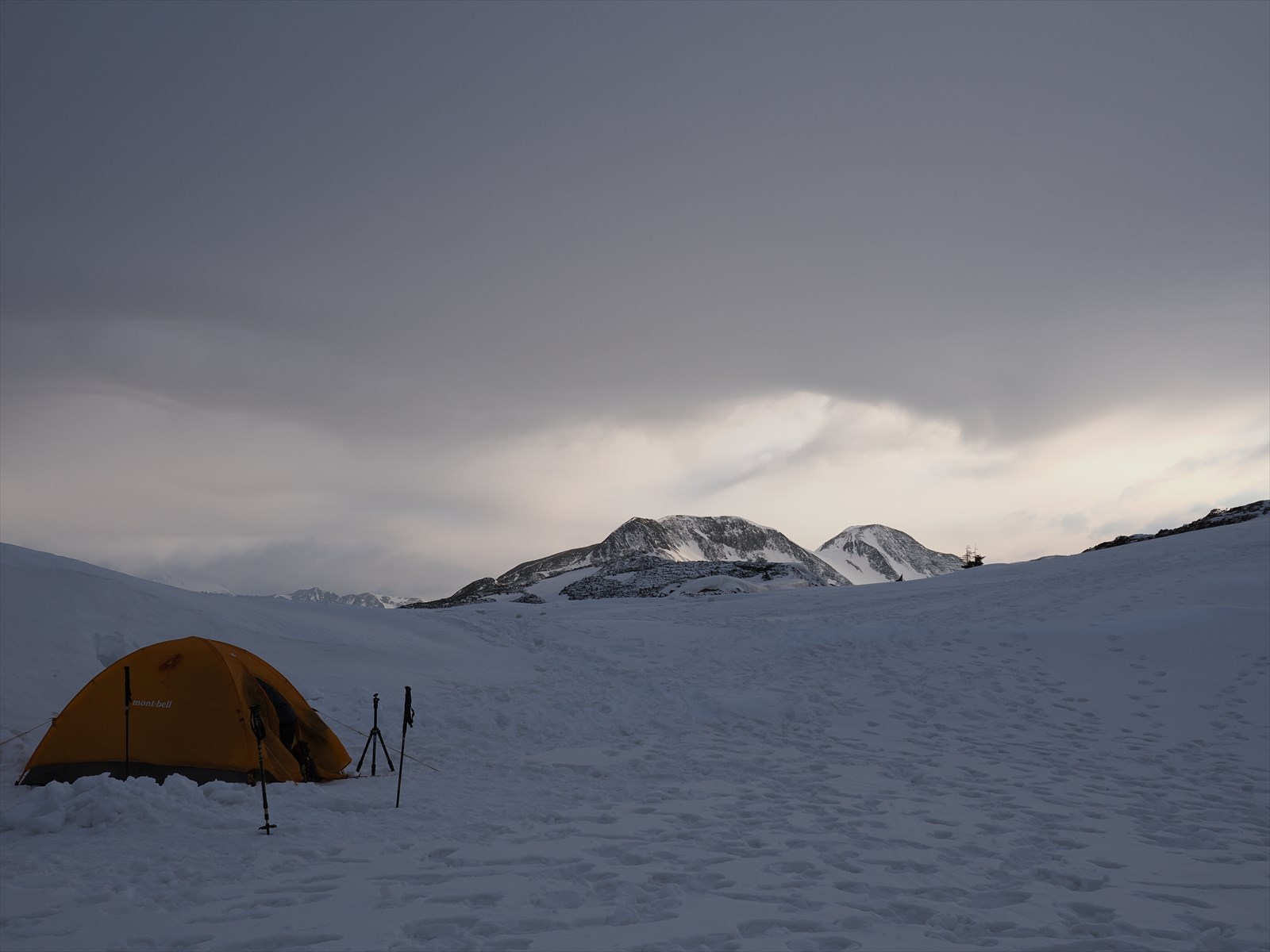 6時過ぎにテントを置いて出発します。予報によると天気は回復傾向です。