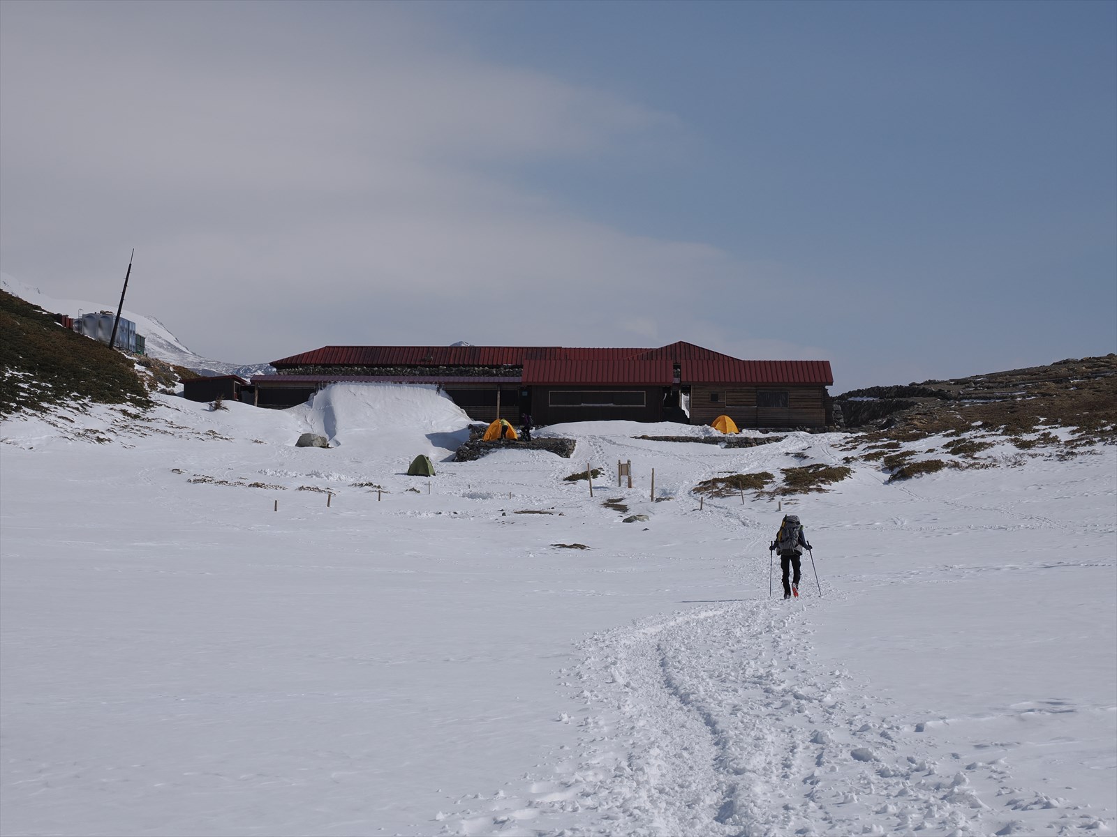 テントがちらほらと見えますね。双六小屋は冬季閉鎖中で、営業していません。