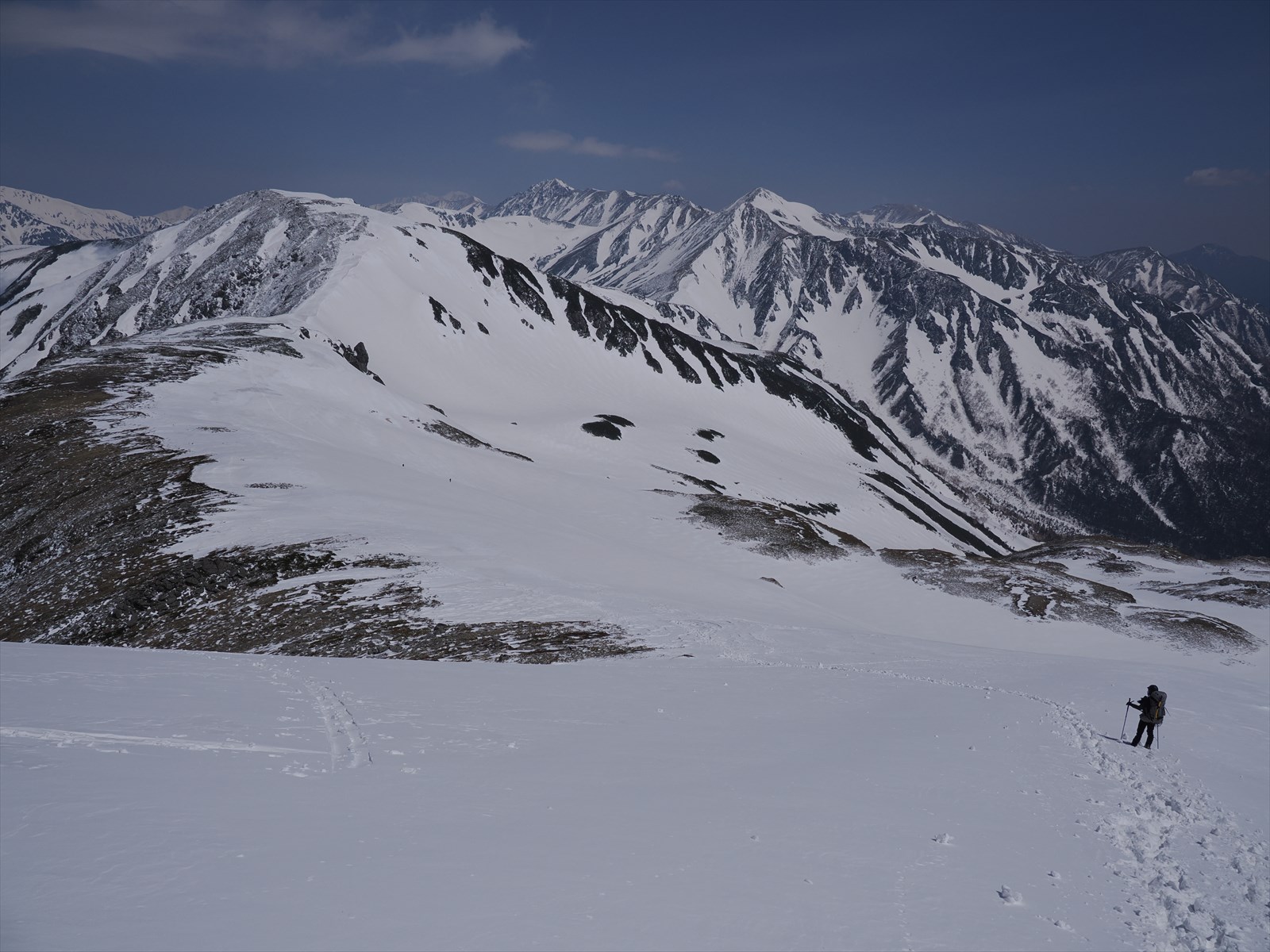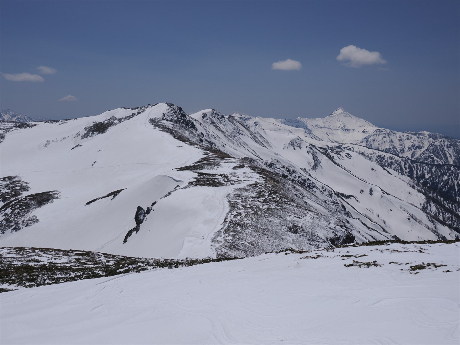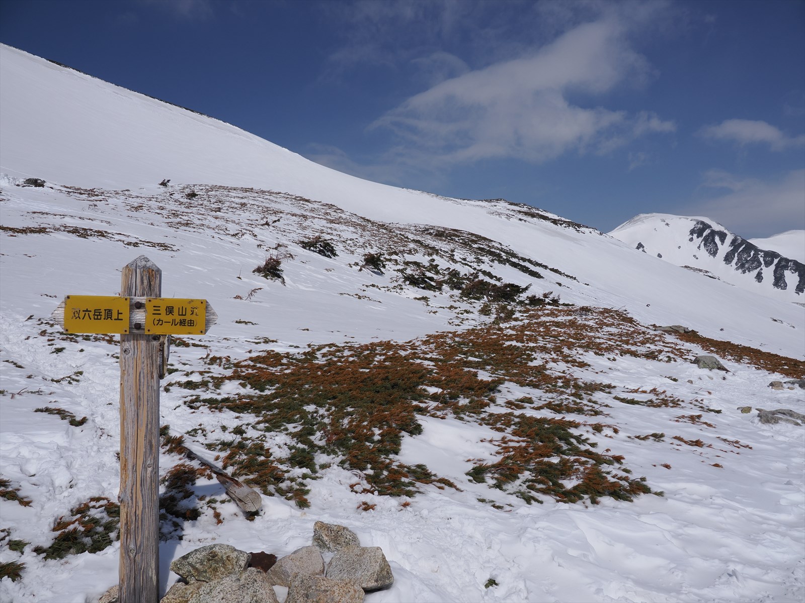 今回は稜線ルートを通ります。途中で双六岳を通ることができ、雪崩の危険も少なく、景色も良いからです。