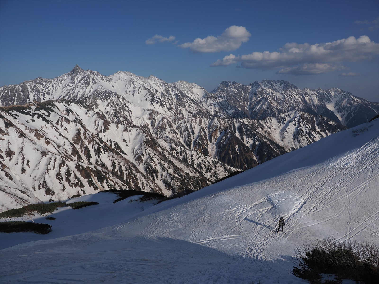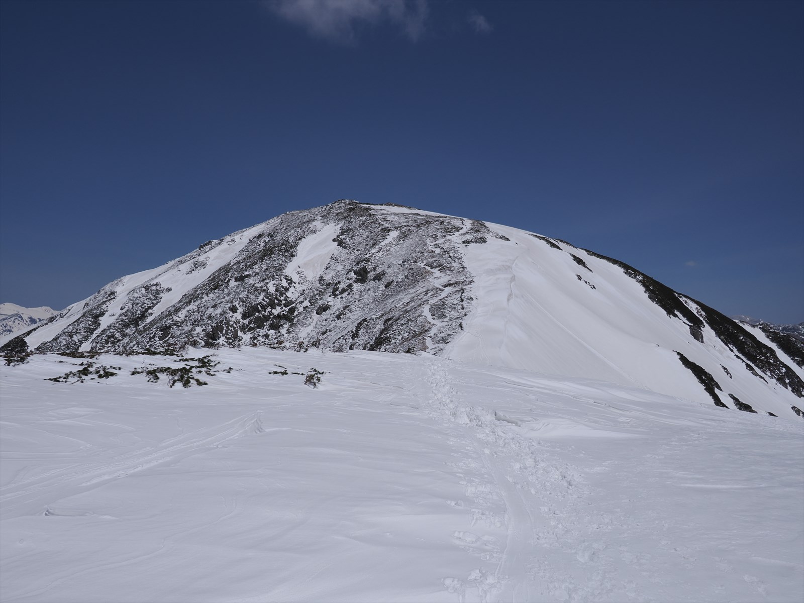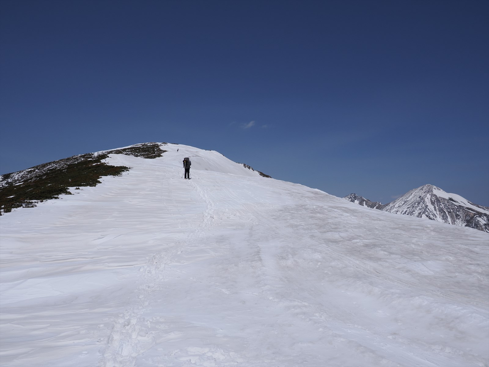 本当は惜しくて、鷲羽岳をアップで撮影してしまいました。この時期に鷲羽岳に行こうとしたら、追加で1泊は必要ですね。無雪期に鷲羽岳にいったことが懐かしく思い出されます。