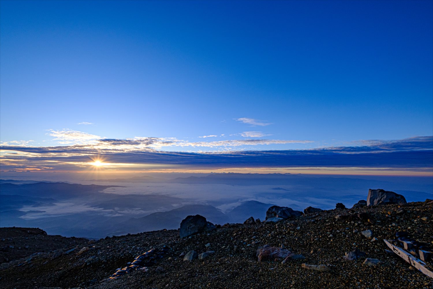 御嶽山頂上で朝日を見るため、未明から登山開始です。