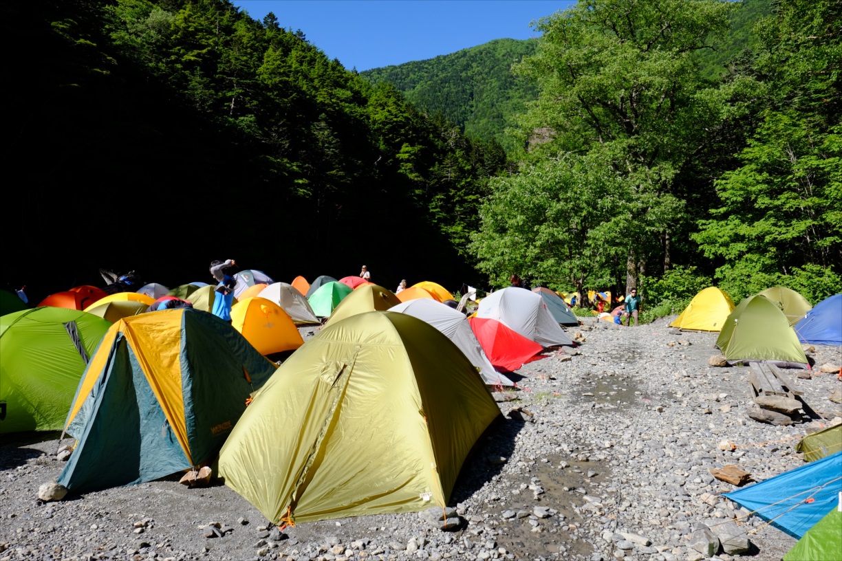 バス終点から徒歩10分という近さもあり、午前中の早い時間にはテント場は満員となった。