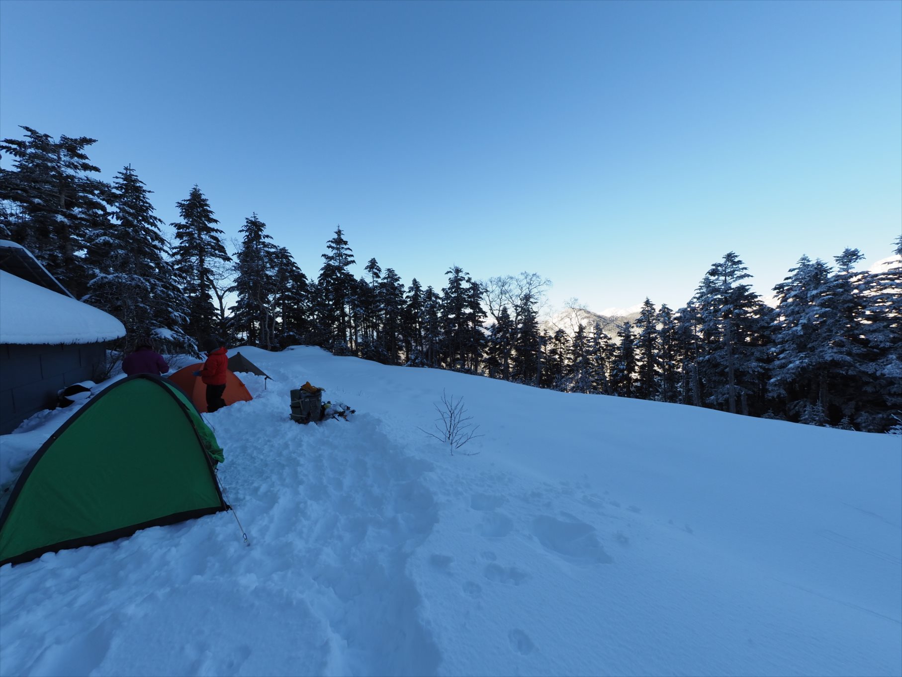 冬季小屋が満杯だったときに備え、かならず幕営用具を担ぎ上げるようにしましょう。