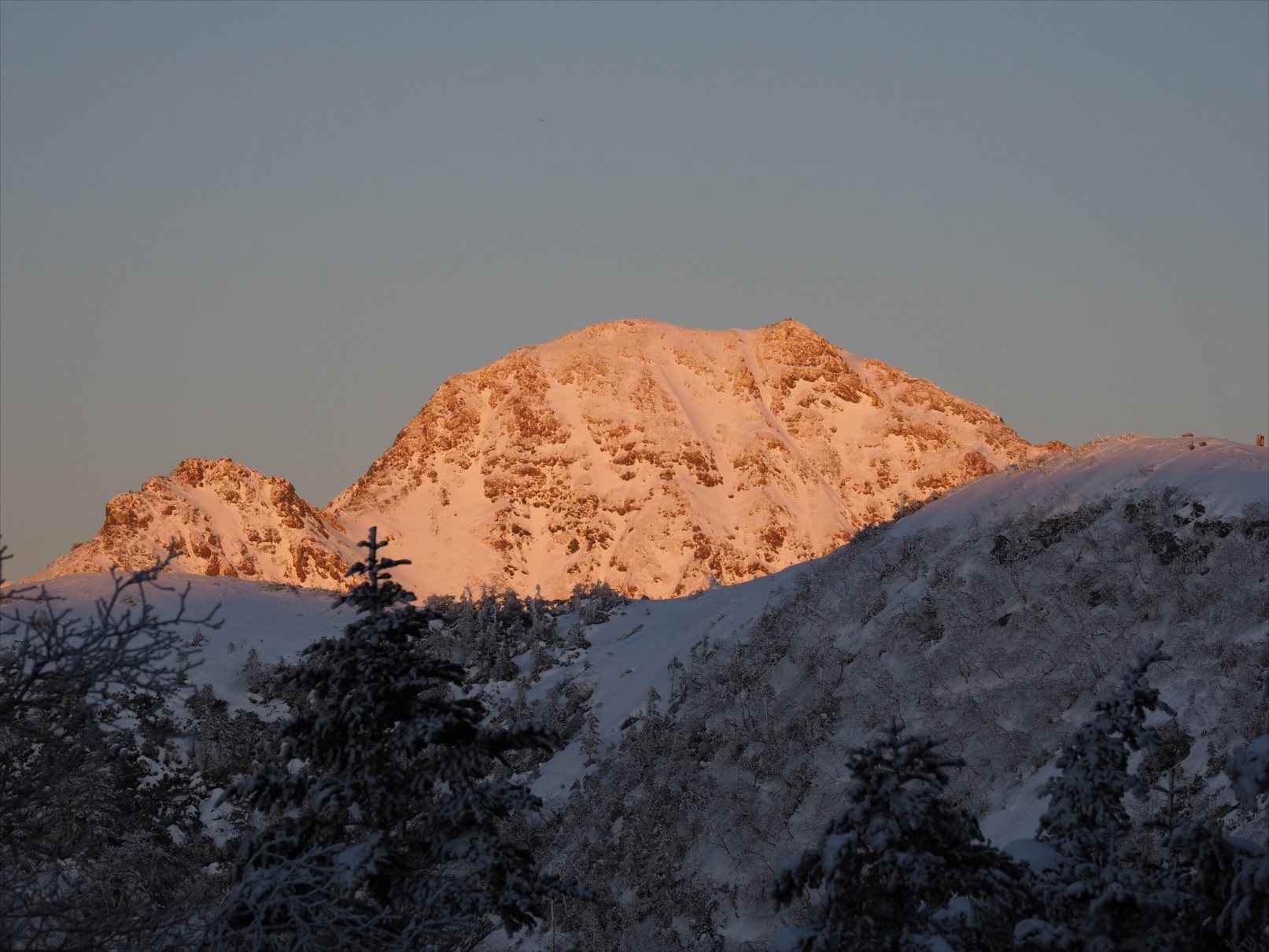 一方冬季には手前の道路が閉鎖され、体力と技術力の両者を求められる、難しい雪山と化します。