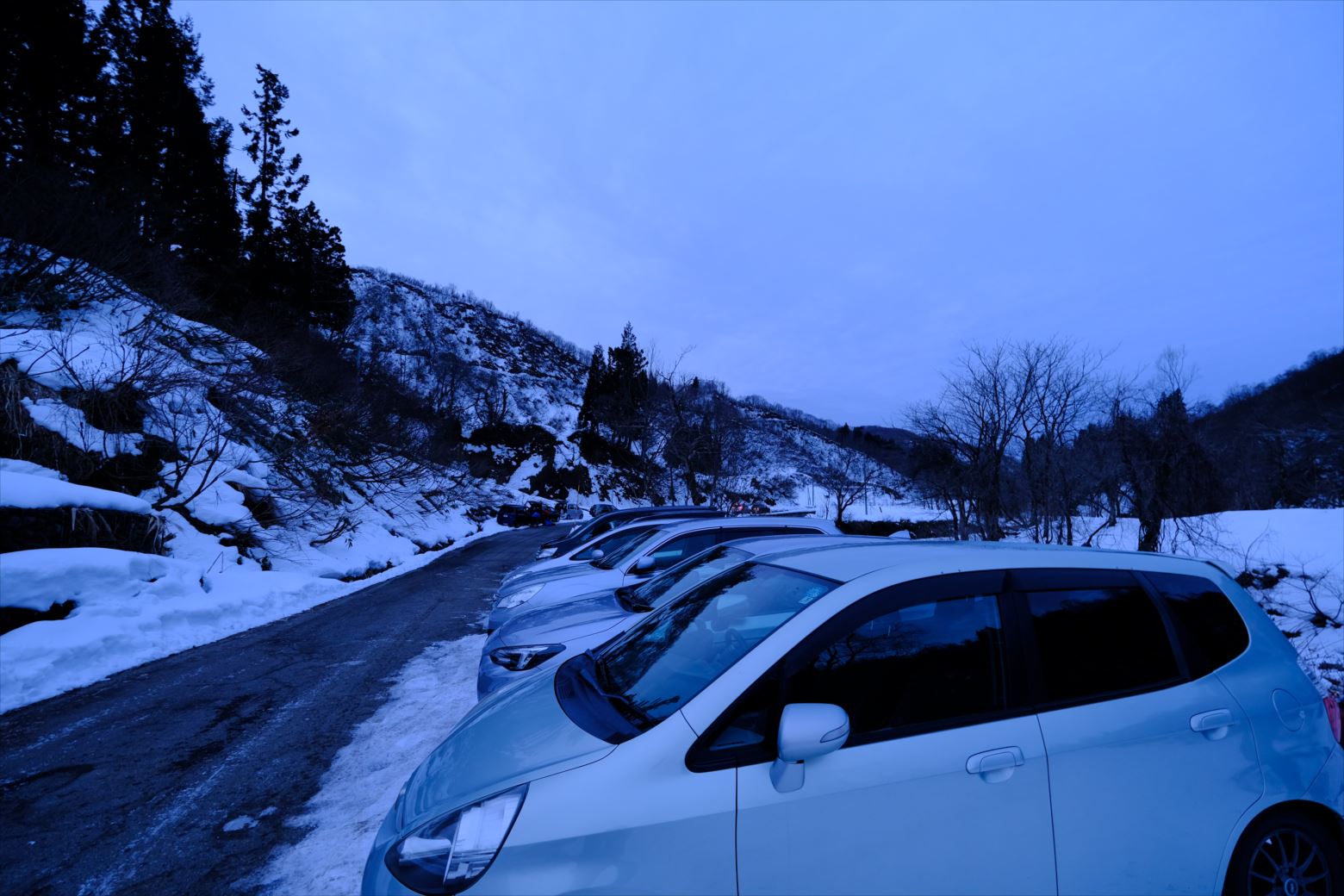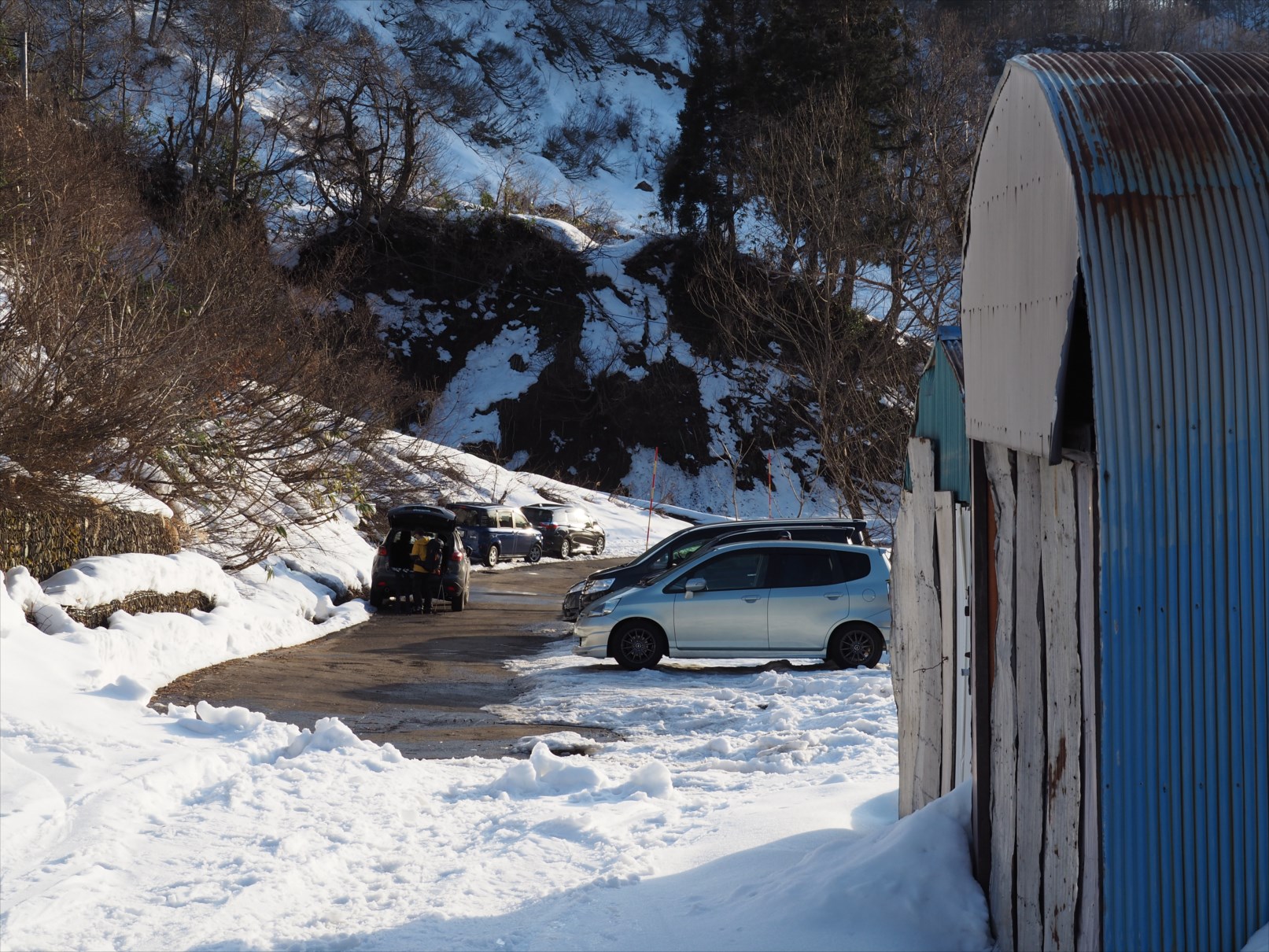 冬季除雪終了地点の道路わきには10台弱の駐車スペースがあります。