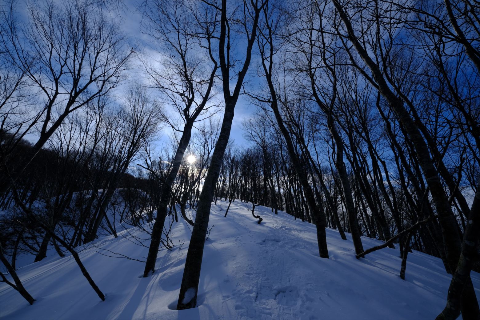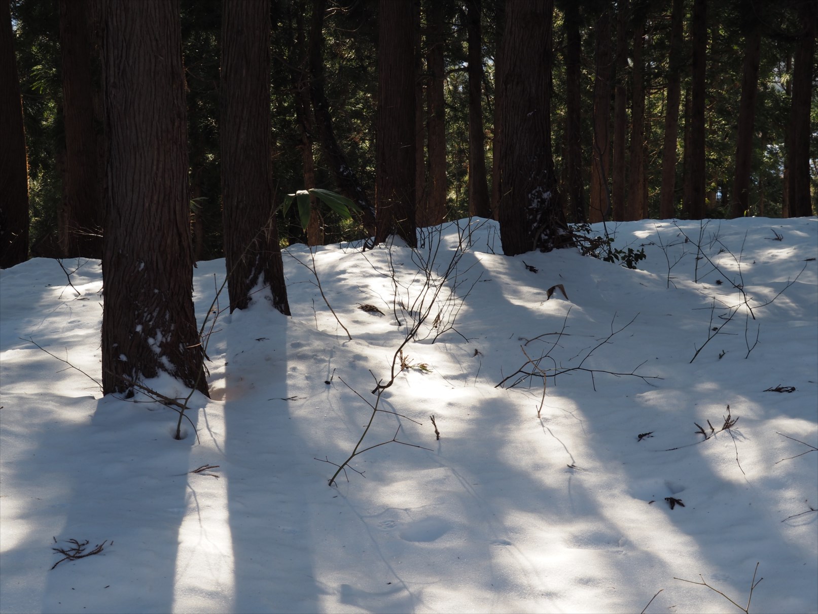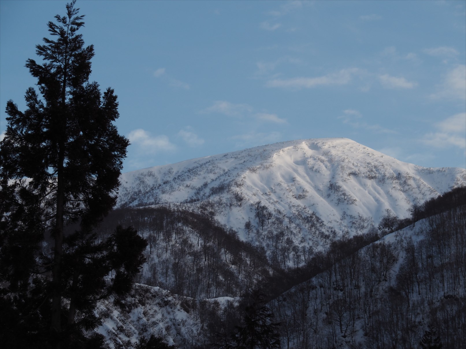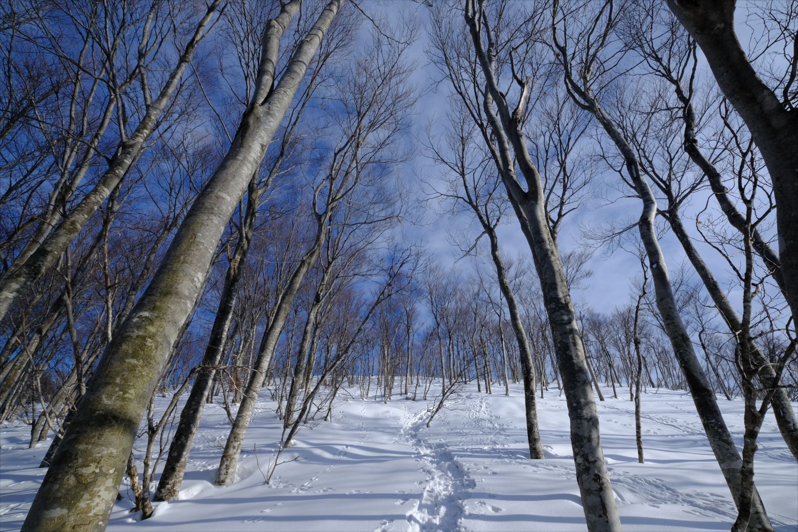 無雪期には単調な樹林帯かもしれませんが、雪山では枯れ木も美しい風景と化します。