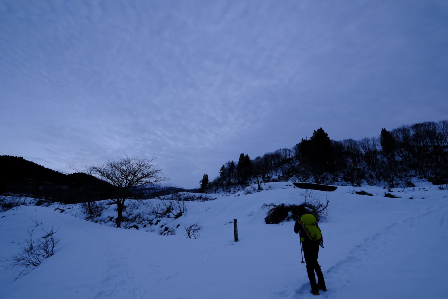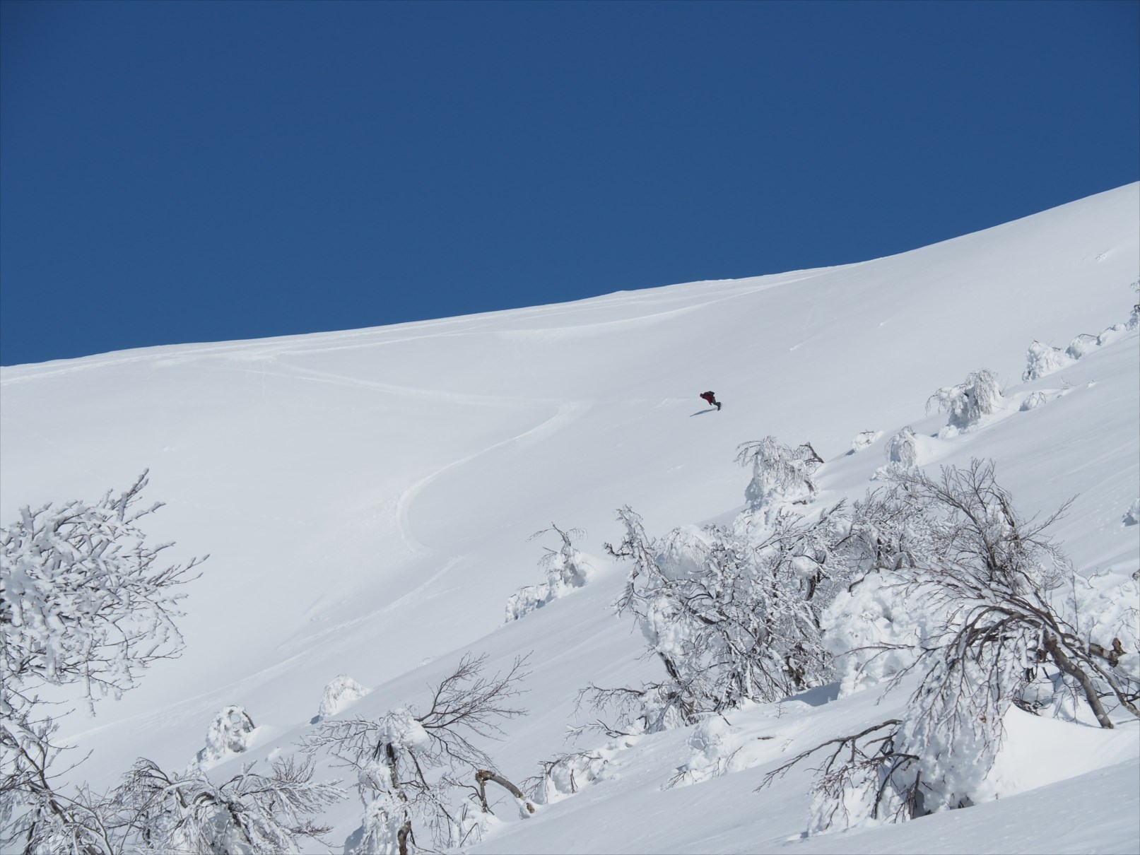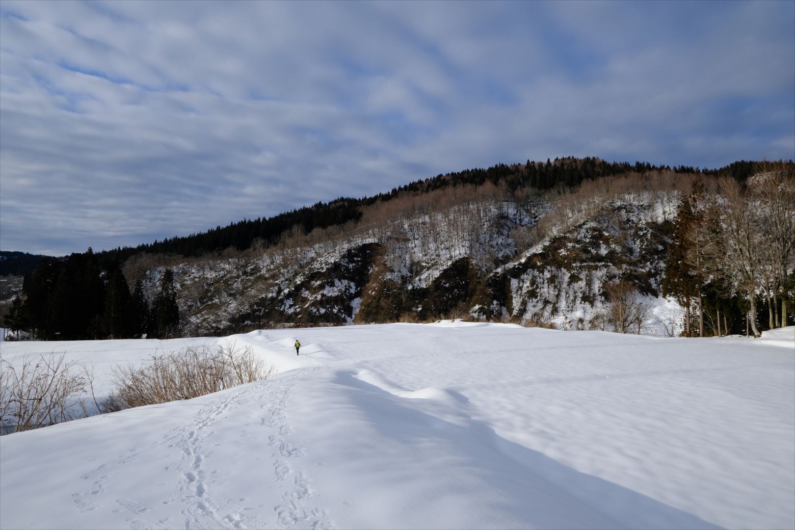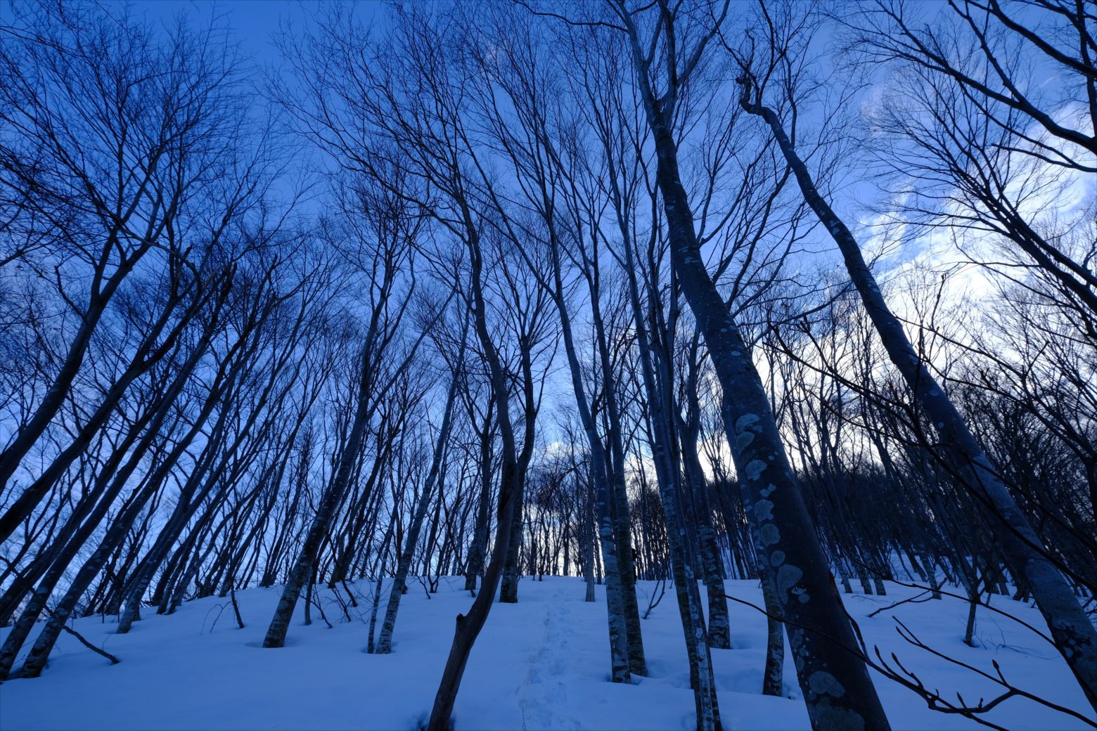 無雪期には単調な樹林帯かもしれませんが、雪山では枯れ木も美しい風景と化します。