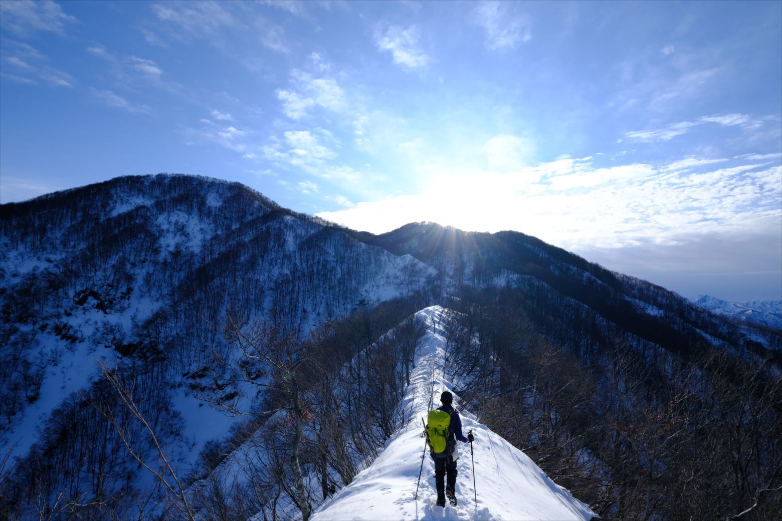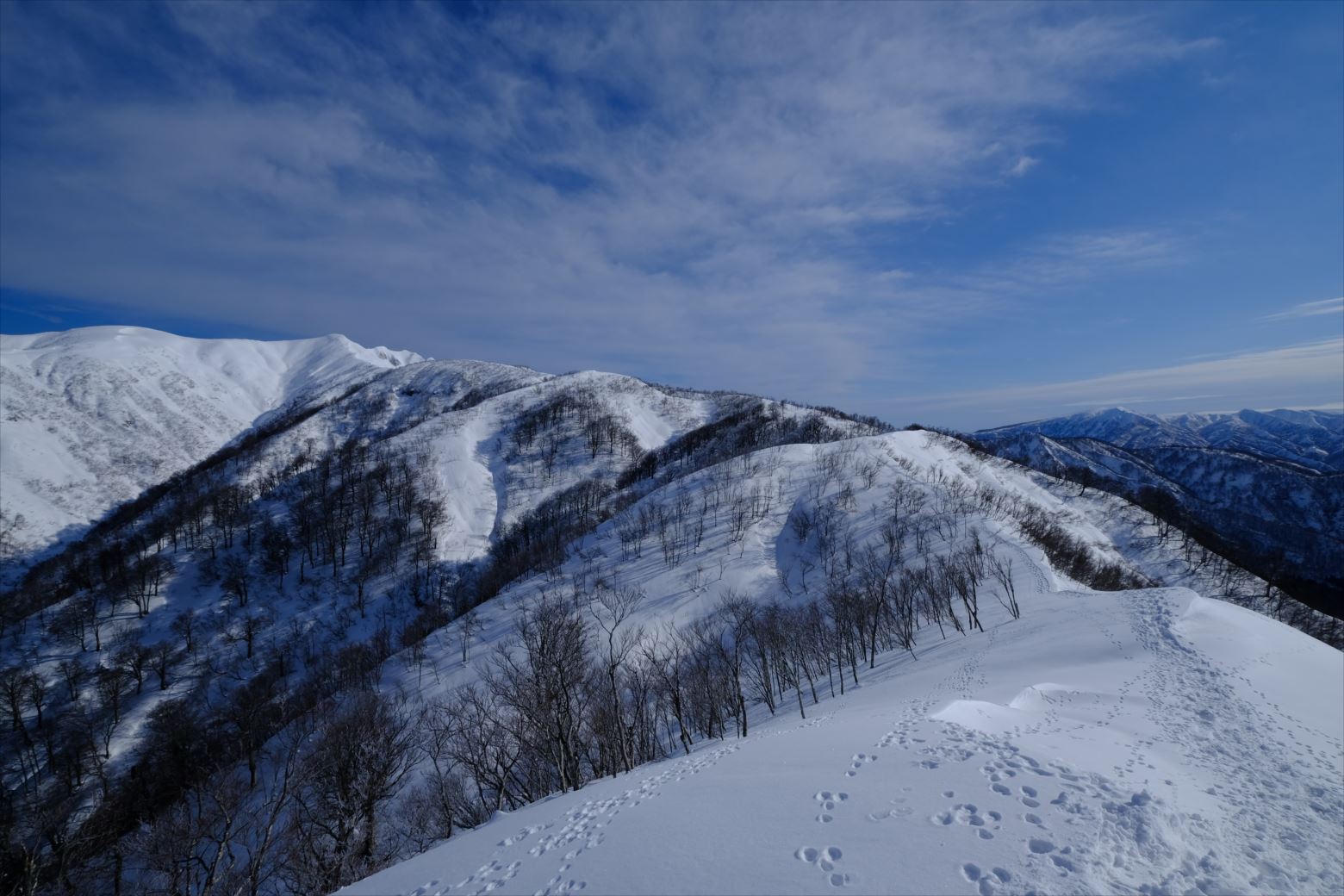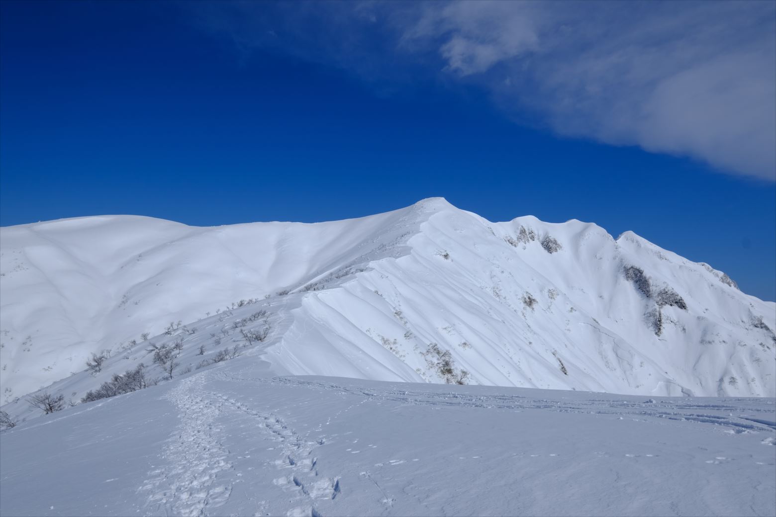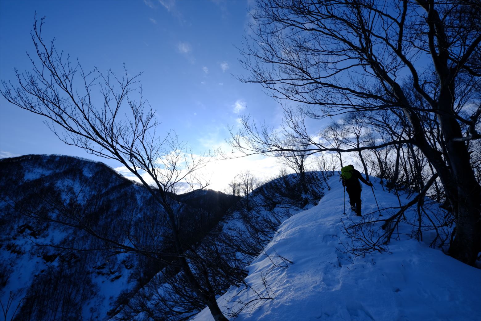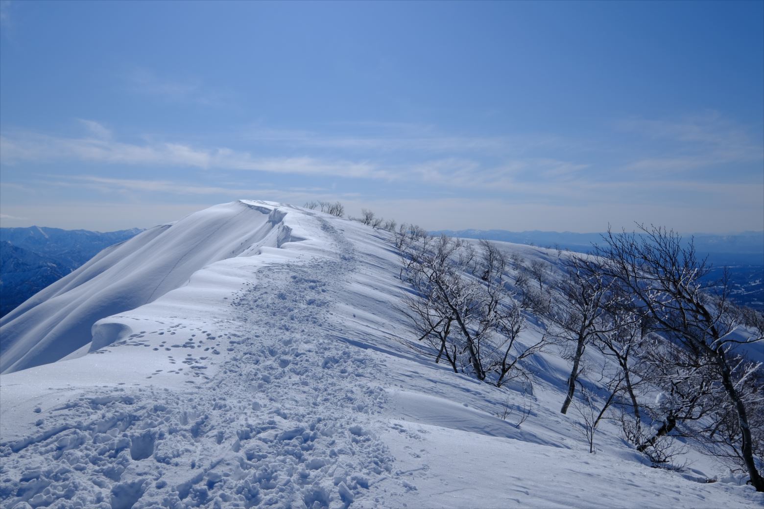 厳冬期(1~2月)には晴天率の悪い越後ですが、今回は貴重な晴天に恵まれ、最高の山行となりました。