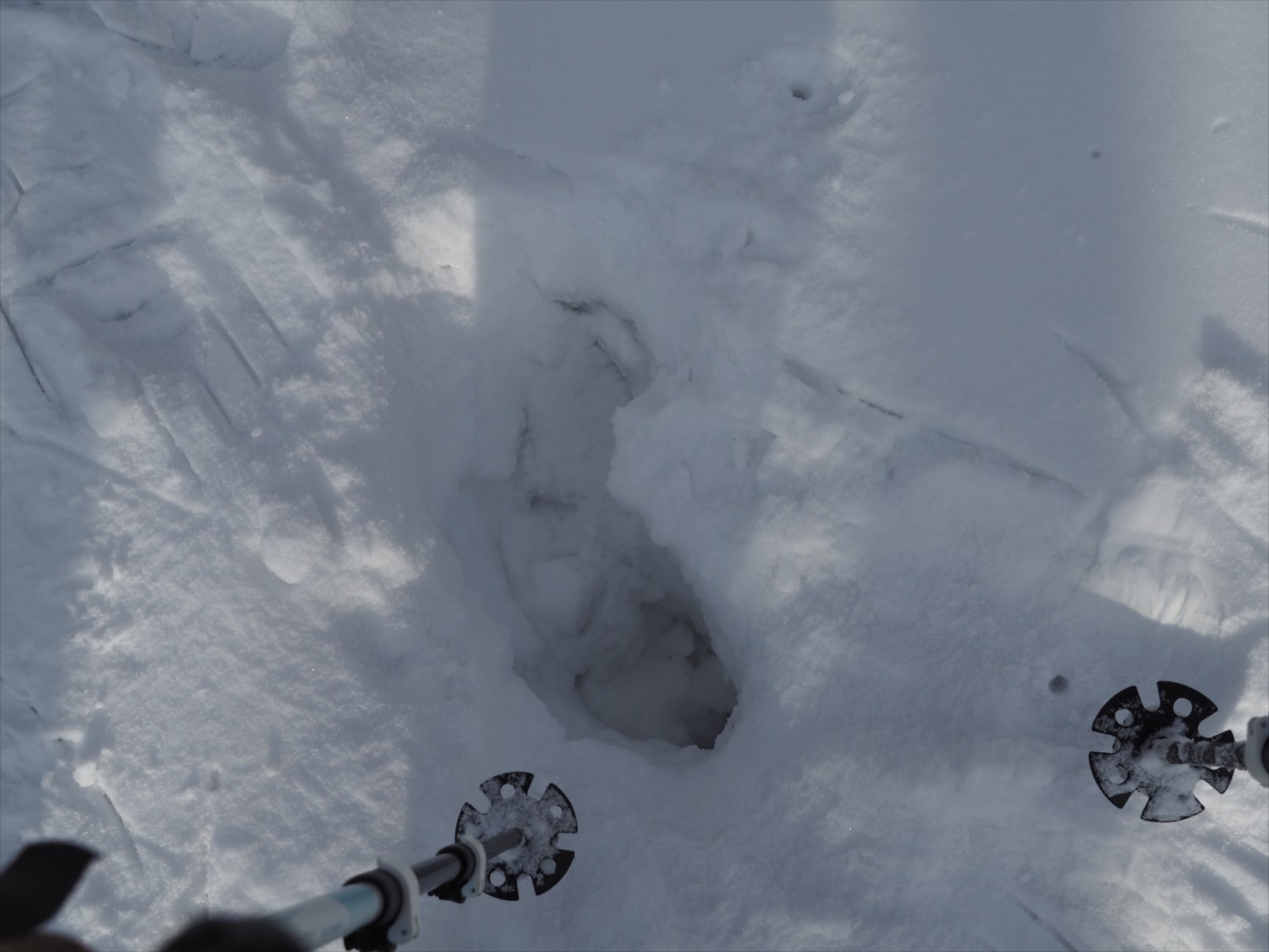 ワカンを付けたとたんに、踏み抜きが全くなくなりました。
