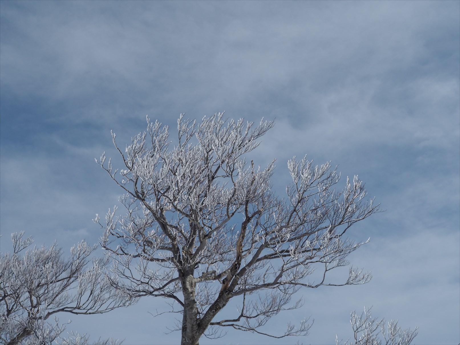 霧氷と青空が美しい。