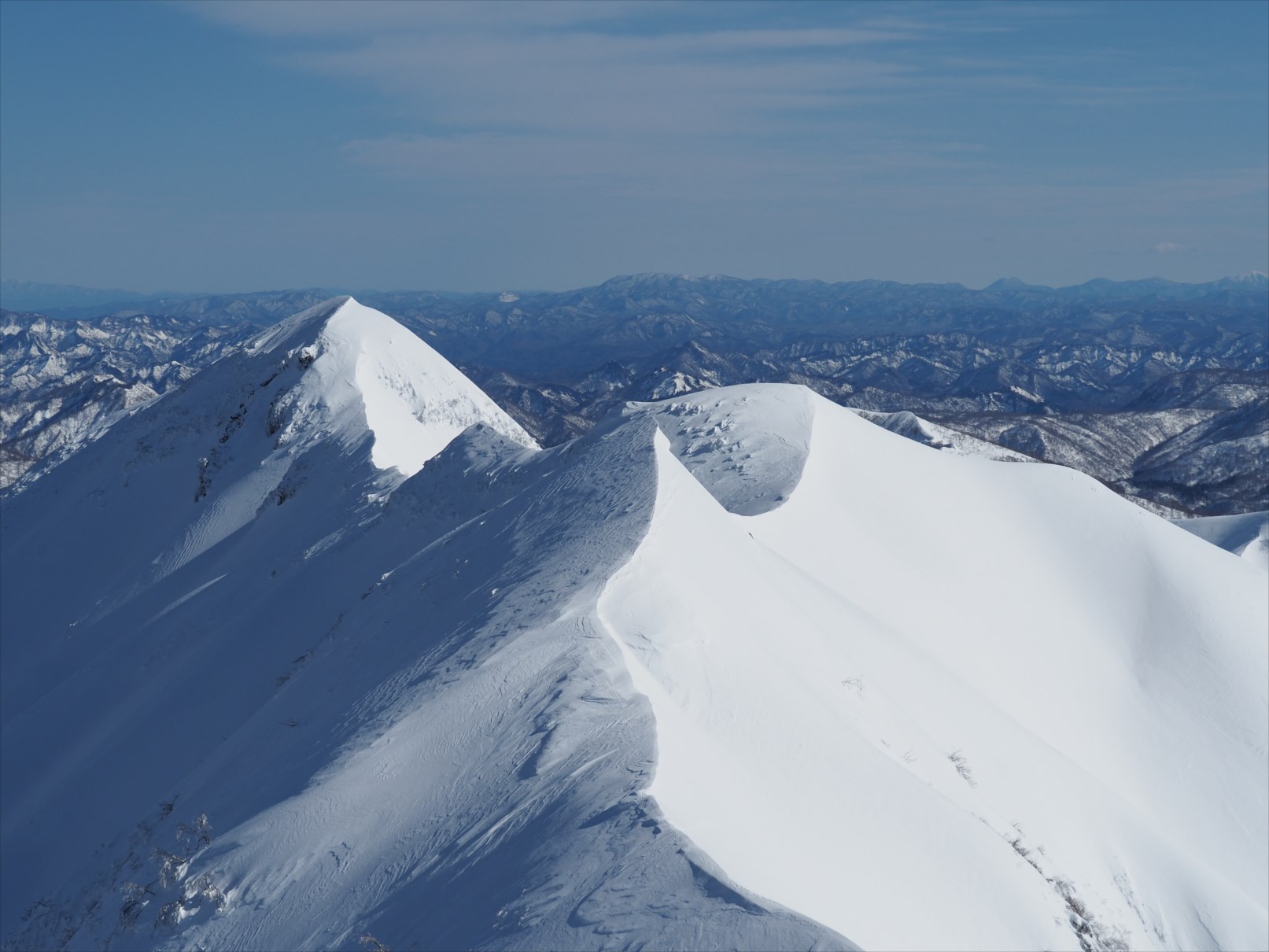 厳冬期には日本海からの冷たく湿った風をもろに受けるため雪庇が発達することで知られています。東洋一の雪庇と呼ばれています。