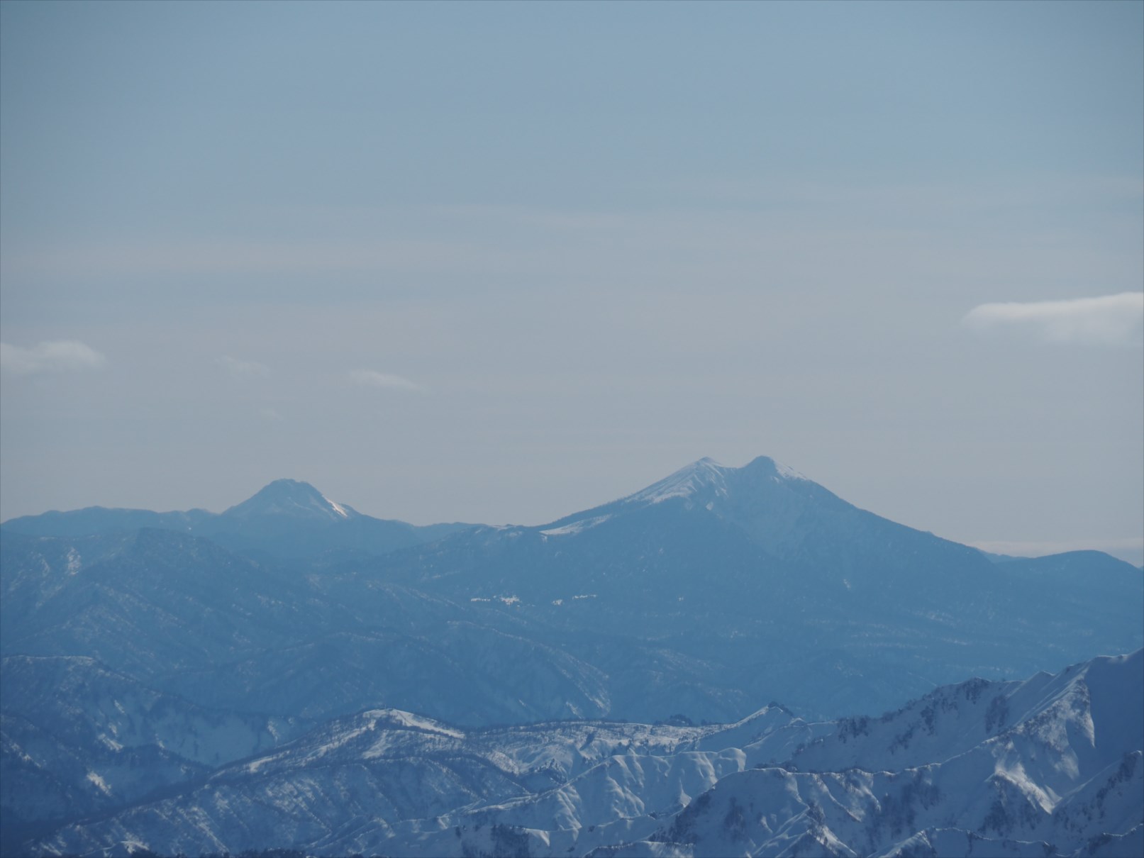 右は2つ耳の特徴的な燧ケ岳、左は日光白根山です。